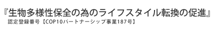 このホームページは、COP10パートナーシップ事業認定をいただいています。 認定登録番号 【COP10パートナーシップ事業187号】